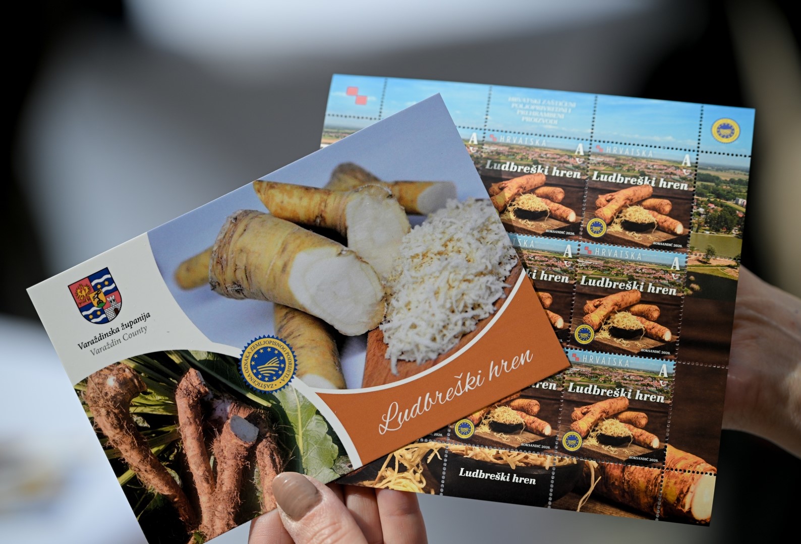 VARAŽDIN – Ludbreški hren krenuo je na dugo „putovanje“ diljem Hrvatske i svijeta kao motiv na poštanskim markama, razglednicama i žigovima. Hrvatska pošta je u ediciji “Hrvatski zaštićeni poljoprivredni i prehrambeni proizvodi” izdala marke posvećene upravo ovom autohtonom proizvodu Varaždinske županije, a svečano predstavljanje upriličeno je u atriju Županijske palače.